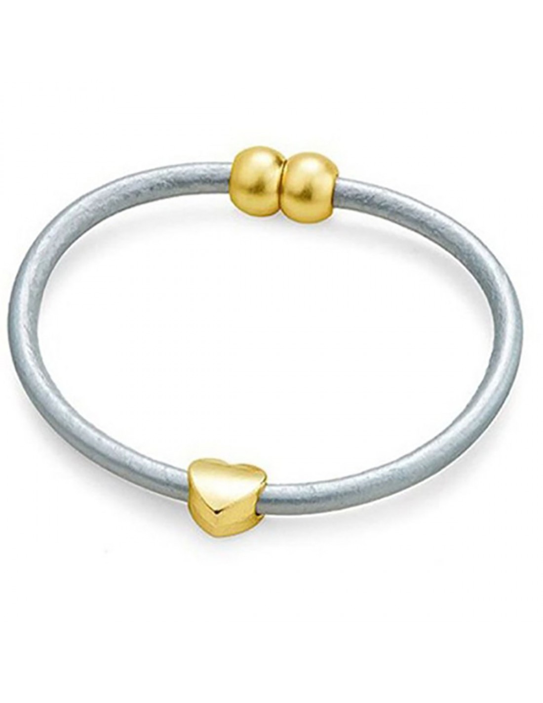 Pulsera mujer cordón de cuero con corazón de aleación metálica acabado dorado. Cierre magnético, disponible en dos colores, rojo y gris. Medidas, largo 190 mm, diámetro cordón 4 mm, corazón 11 X 10 X 7 mm. Peso 5 gr.